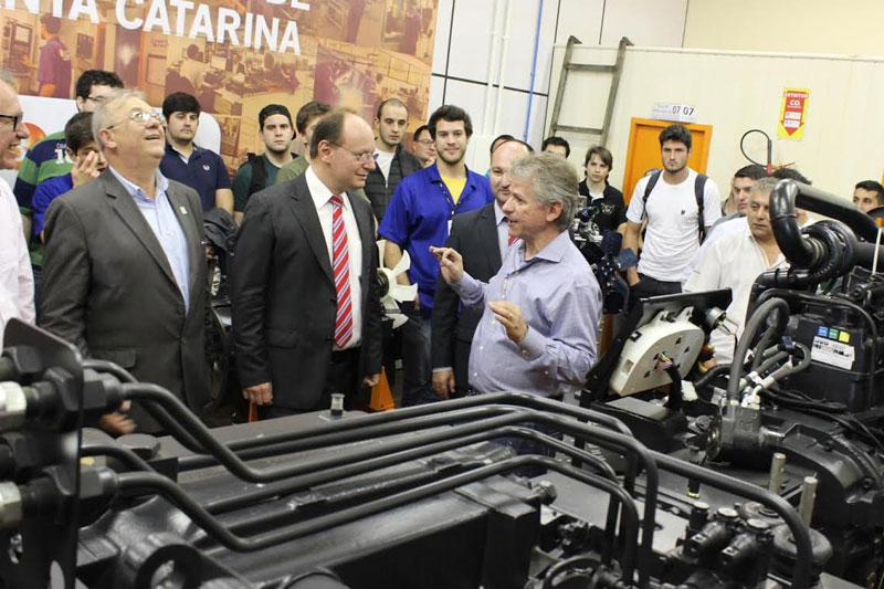 A Budny Tratores e a Satc inauguraram um laboratório conjunto para o curso de Engenharia Mecânica nesta quinta-feira, dia 16. O espaço está equipado para que bolsistas possam realizar pesquisas. A estrutura com power trem, eixo dianteiro, motor, caixa de transmissão, eixo traseiro e parte hidráulica de um trator foi montada com um investimento de R$ 100 mil. A apresentação ocorreu na 2ª Semana da Empregabilidade Satc.