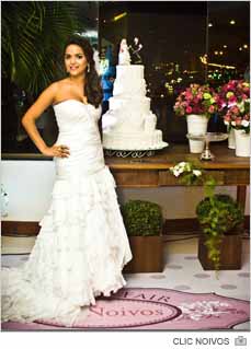 Cada casal tem suas prioridades, mas o vestido de noiva está sempre entre as principais. O custo dele pode representar de 6 a 10% do orçamento total da festa. No Ateliê Chy Fashion, em Içara, a demanda média é de 15 looks por mês. As peças feitas com exclusividade, de acordo com o gosto da cliente, custam de R$ 4 mil a R$ 20 mil. “Algumas clientes ainda nem marcaram a data do casamento e já vêm fazer uma visita. Elas deixaram de gastar com decoração para investir no vestido”, comenta a estilista Chirlley Vicente Recco.