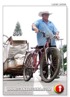 Para contornar o calor, o senhor de chapéu branco e 59 anos abre um pouco mais a camiseta. Deixa poucos botões presos. Nas mãos, os calos são visíveis e não há nenhum material de proteção. Durante os anos em que atua nas ruas de Içara, nunca recebeu um curso de capacitação. Mas não se preocupa com isso. Sabe que pode contrair doenças. Mas esta ansioso. Aguarda é pelo fim da jornada como catador de papelão e latinhas. E anuncia já uma possível data para a aposentadoria: “Pode ser que venha no ano que vem”.