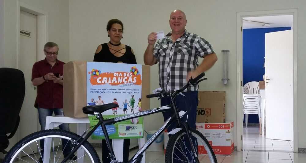 A Câmara de Dirigentes Lojistas de Içara encerrou a promoção do Dia da Criança com sorteios nesta quarta-feira, dia 18. Dois jogos Genius foram para Guilherme M. Manoel (Lojas De Luca) e Miguel Luiz Passarela (Castagneti Supermercados). Além disso, Amanda F. Costa (JR Materiais de Construção) e Marco Camargo (Posto Olivia) ganharam uma bicicleta de cada.