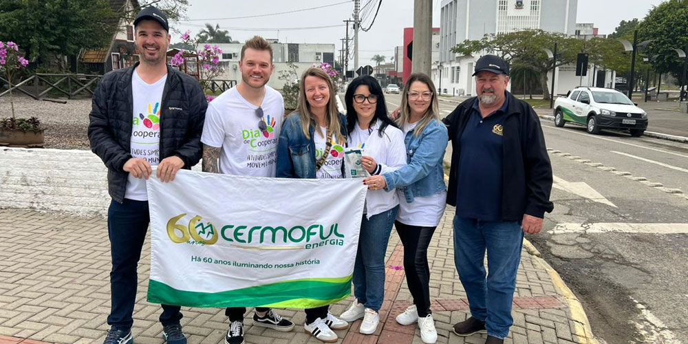 A Cermoful Energia comemorou o Dia Internacional do Cooperativismo com ações para a sustentabilidade neste sábado, dia 20. Em blitze, kits com sacolas ecológicas, lápis sementes que podem ser plantados e folhetos explicativos foram distribuiídos no centro de Morro da Fumaça, no distrito de Estação Cocal e no bairro Presidente Vargas, em Içara.