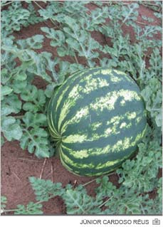 A melancia é composta por 92% de água. Todavia, o excesso de chuva no cultivo não é ideal para o desenvolvimento da fruta. Tanta umidade faz as folhas adoecerem. Em consequência o pé seca e morre. Já as frutas pequenas caem. “A estimativa é que a colheita atrase 30 dias”, aponta o produtor Júnior Cardoso Réus.