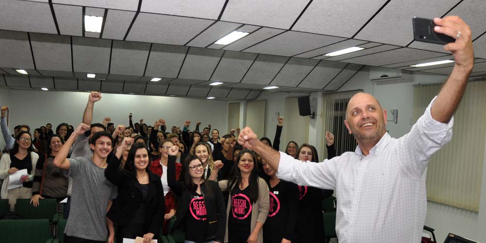 Uma venda de sucesso é aquela que satisfaz o consumidor e também gera valor para a empresa. Atender, vender e fidelizar o cliente envolve também uma comunicação eficaz, organização e sobretudo vontade. No que depender de quase 100 comerciantes e comerciários de Içara, motivação não faltará para qualificar ainda mais o setor na cidade. Eles lotaram o auditório da Cooperaliança na palestra com o consultor de vendas e coach Renato Schulz Júnior na noite desta quinta-feira, dia 25. O evento encerrou com um grito coletivo que sintetizou o encontro: “Eu quero, eu posso, eu consigo”.
