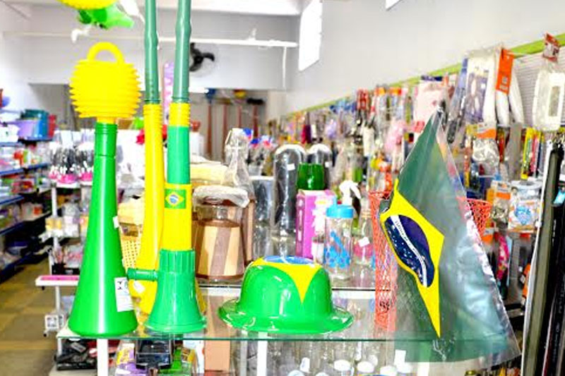 A proprietária da loja Líder R$1,99, Bruna Cardoso Silveira, relata que os consumidores deixaram para fazer as compras na última hora. Ela já teve que abastecer o estoque por duas vezes. “Alguns se anteciparam, mas a grande maioria deixou para comprar ontem mesmo. Temos muitas opções super em conta para todos estarem no clima da copa”, garante. O produto mais procurado é, com certeza, a bandeira. Ela estava por R$2,99 assim como a corneta. Já a vuvuzela pode ser encontrada por R$ 4,99, a buzina por R$ 6,99 e o chapéu por R$ 3,99.