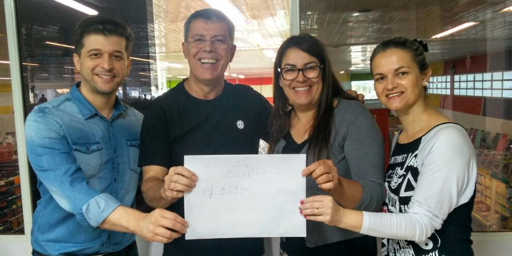 A Comunidade Feminina Deus Está Aqui recebeu o troco solidário do Abimar Supermercados na manhã desta terça-feira, dia 8. A campanha durou ao todo 30 dias na loja de Araranguá e resultou na arrecadação de R$ 969,10. “Agradecemos aos clientes que contribuíram. Somos gratos também ao vereador Israel Jorge Rabelo por ter indicado para nós essa importante entidade”, coloca um dos fundadores da rede de supermercados, Custódio Abílio da Silva.