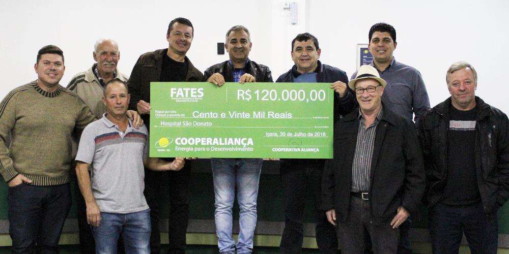 “É recompensador poder auxiliar tantas entidades do nosso município e destinar essa boa quantia para o nosso hospital, que hoje atende nossos associados e consumidores”, ressaltou o presidente da Cooperativa Aliança, Jorge Rodrigues. O Fates é constituído de no mínimo 5% das sobras liquidas apuradas no exercício. A aprovação da doação foi realizada pelos associados, durante assembleia, em março deste ano. Ao todo 11 entidades receberão os valores estipulados para auxilio de projetos até o final do ano.
