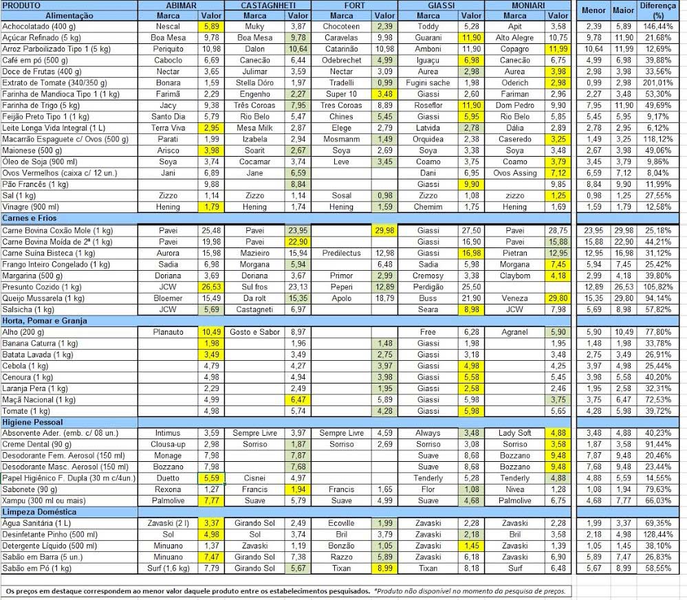 Diferença de itens da cesta básica chega a quase 150% em Içara