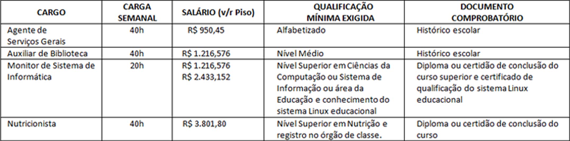 A Secretaria Municipal de Educação está com vagas temporárias abertas para agentes de serviços gerais, auxiliares de biblioteca, monitor de Informática e nutricionista. As inscrições acontecerão nos dias 23 e 24 de novembro na Casa do Professor Ilda Colle. Entre as exigências está ser brasileiro com mais de 18 anos, possuir a qualificação profissional indicada e não ter pendências quanto aos deveres eleitorais e militares. A seleção levará em consideração a prova de títulos e o tempo de serviço.