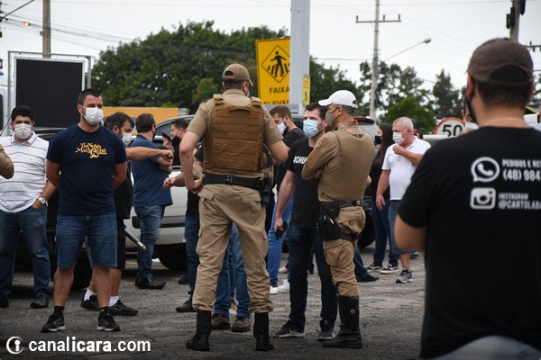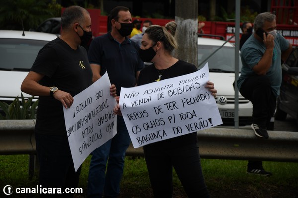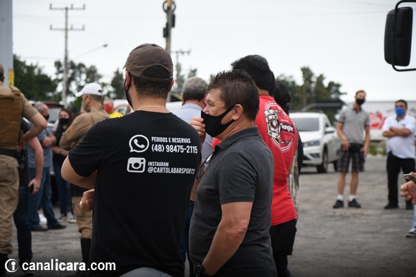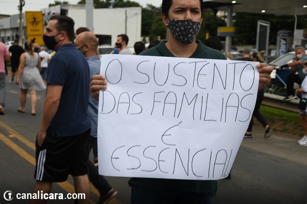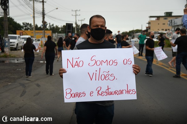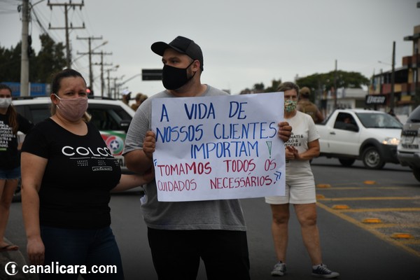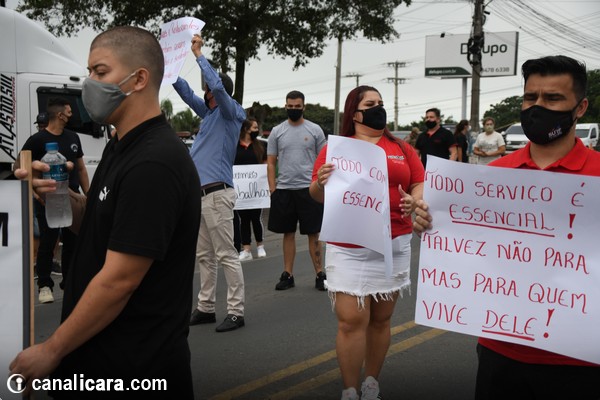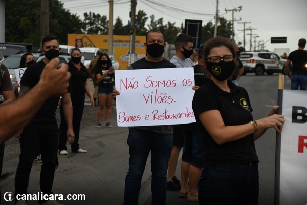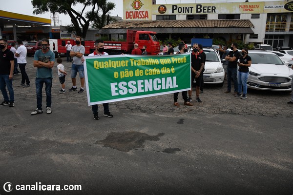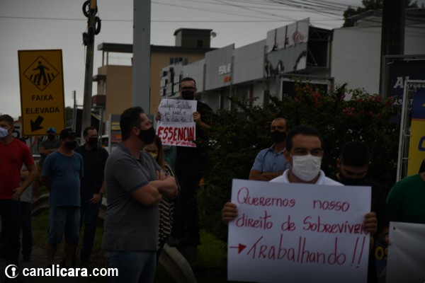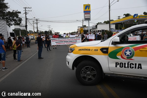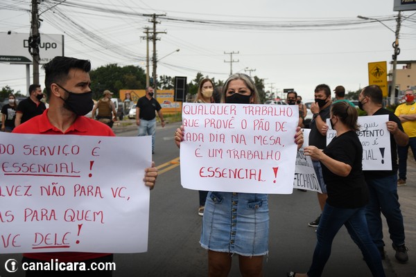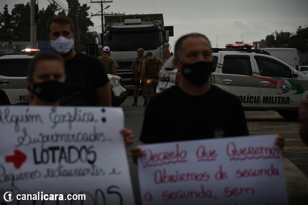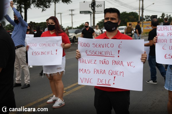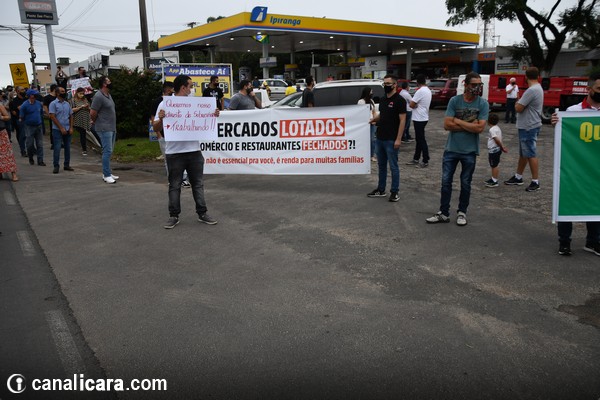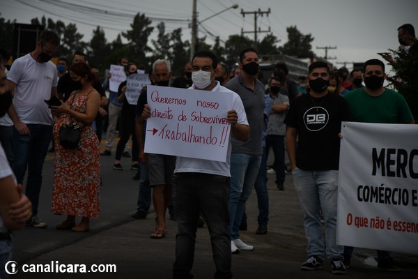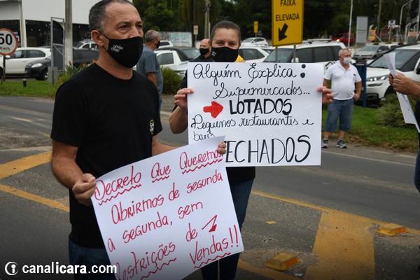 "Estamos reunidos para reivindicar o nosso trabalho. O nosso setor já vem sofrendo com os lockdowns disfarçados há mais de um ano. A nossa reivindicação é para poder vender todo o mix de produtos, que hoje estamos proibidos, e trabalhar até meia-noite, sempre com bastante cuidado, preservando a vida das pessoas", indica um dos organizadores, Junior Candioto Guedin. “A manifestação ocorreu por 10min de forma pacífica, sem nenhum problema, com o uso de máscara e o devido distanciamento”, avalia o tenente da Polícia Militar de Içara, Ramon Spillere