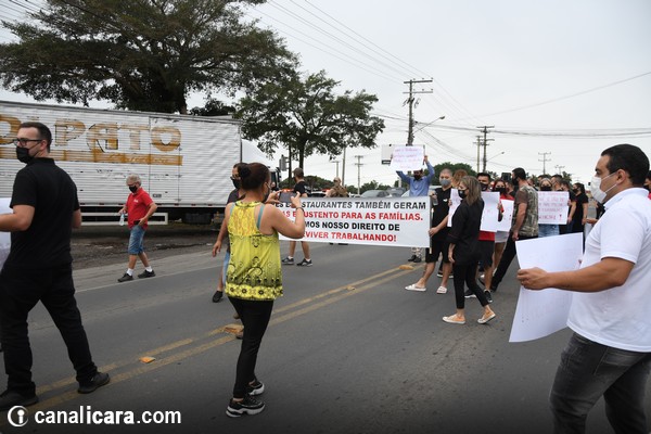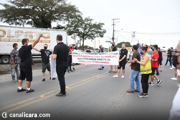 Manifestação foi realizada em trecho central da rodovia estadual contra restrições ao setor gastronômico