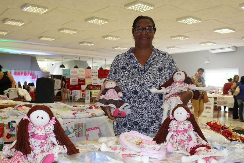 Trabalhos como o de Maria da Glória estão na 1ª Expofai. O evento iniciou nesta quarta-feira e seguirá no Salão Paroquial São Donato das 11h às 19h30 na quinta-feira. “Temos muitas coisas para serem vendidas porque nós pedimos para as mães guardarem, pois elas vendem tudo que produzem”, coloca a presidente do Departamento de Fomento as Atividades Inclusivas do Município, Ceneli de Freitas Gastaldon. “Esta é a oportunidade de conhecer todos os clubes em um só lugar”, enfatiza a vice-presidente Georgia Bolsoni Serafin.