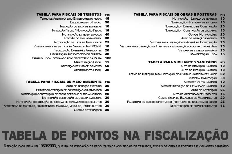 Os pontos de produtividade excedentes dos fiscais da Prefeitura Municipal de Içara passam agora a valer para as famílias no caso de falecimento do servidor público. O benefício está na mudança da lei 1960/2003 conforme publicado nesta última segunda-feira, dia 1. Aos fiscais em atividade, continua o limite mínimo de 250 pontos ao mês e máximo de até 100% do valor do salário-base. A sobra vai então para os meses subsequentes. Uma intimação fiscal, por exemplo, vale 15 pontos. Já um trabalho fiscal designado pelo secretário de Finanças representa a maior produtividade, neste caso, 100 pontos.
