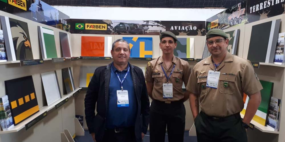 A Tintas Farben está na ExpoDefense em Florianópolis com soluções tanto para a pintura de carros de combate e aviões quanto para outras necessidades do Exército, Marinha e Aeronáutica. Entre os itens apresentados estão tintas para fuselagem de aviões, heliponto, hangares, camuflagem de tanques, navios, peças em fibra, demarcação asfáltica, além da pintura decorativa de aeronaves com cromato de estrôncio.