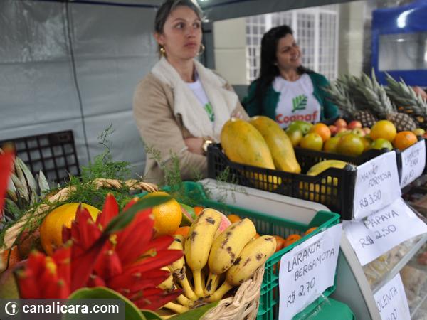 “A ideia da feira é muito boa. É um incentivo para termos alimentos mais saudáveis”, aprova Ângela Cristina Barcelos Formaeski de Souza. A primeira edição organizada pela Secretaria Municipal de Agricultura, Epagri e Coopafi teve a participação de produtores de frutas, verduras, queijos, embutidos, flores, panificações e doces. “Para levar para a casa, criamos também bolsas. Temos ainda toalhas, tapetes, flores artificiais e objetos decorativos”, lembra a participante da Associação das Mulheres Agricultoras de Coqueiros, Nadir de Oliveira da Silva.