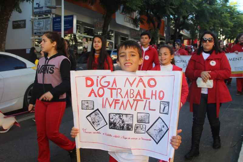As denúncias de trabalho infantil devem ser feitas pelo Disque 100 ou no Conselho Tutelar, Delegacia de Polícia e Rede de Apoio à criança do município.Com o tema “Não a cadeia produtiva”, o alerta foi levado para as ruas de Içara em forma de caminhada nesta quinta-feira, dia 9. Ao todo, seis escolas participaram da ação antecipada ao Dia de Combate ao Trabalho Infantil [12 de junho] com a intenção de convidar a população para refletir sobre o cuidado com o trabalho infantil.