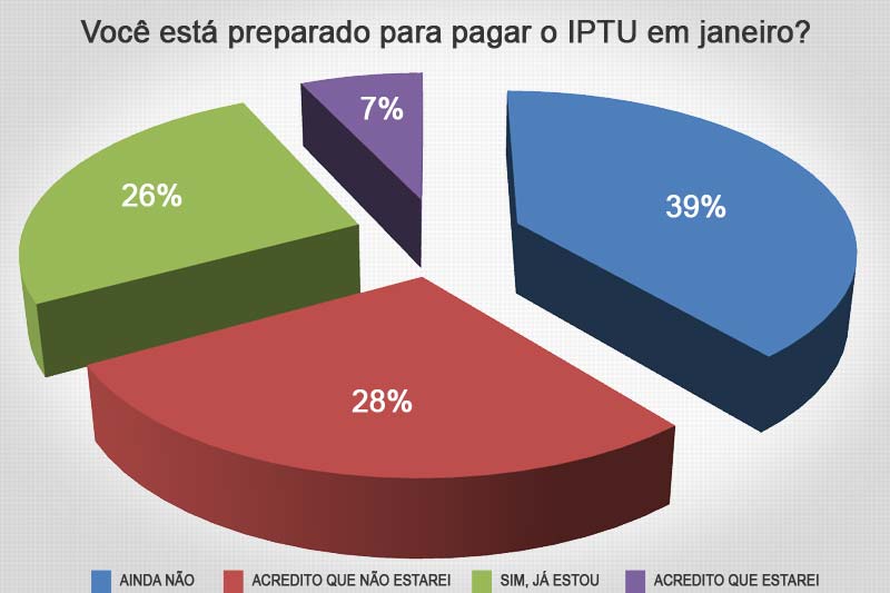 A maioria dos içarenses ainda precisará se organizar para o pagamento do Imposto Predial e Territorial Urbano a partir de janeiro. É que somente 26% aponta já está preparado. Outros 7% consideram que terão condições de seguir o novo cronograma da Prefeitura Municipal. No entanto, 39% indicam que ainda não se prepararam. Além disso, outros 28% acham que não estarão. A enquete feita pelo Canal Içara ocorreu entre os dias 30 de novembro e 7 de dezembro. Participaram espontaneamente 54 internautas.