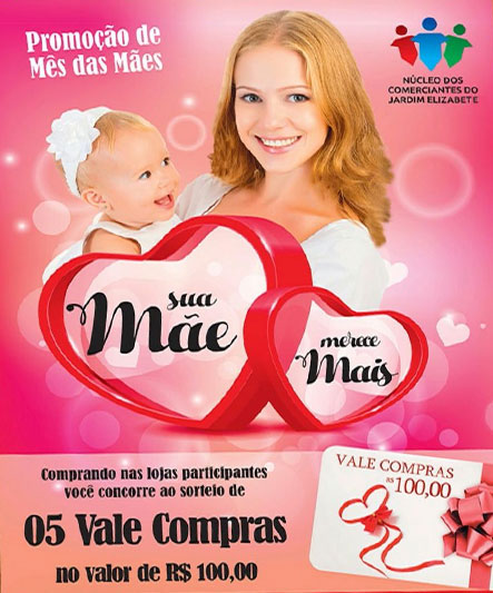 Além da participação do sorteio de um salário mínimo e um jantar promovido pela Câmara de Dirigentes Lojistas, os comerciantes do bairro Jardim Elizabete vão oferecer também vale-compras para o Dia das Mães. Ao todo, cinco clientes serão premiados com R$ 100 para uso entre as empresas participantes. Participam do núcleo lojas de informática, vestuário, livraria, calçados, materiais de construção, tintas, lan house e também mercado. A divulgação dos vencedores acontecerá no baile comunitário no dia 7.