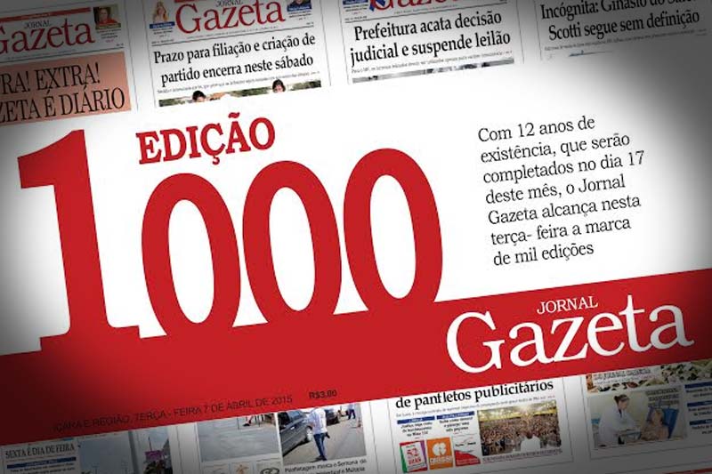 O Jornal Gazeta alcança a milésima edição nesta terça-feira, dia 7. “Desde a primeira edição nosso perfil foi de atender a comunidade. Esse diferencial faz com que o jornal cresça a cada ano”, fala satisfeito o diretor Augusto da Luz. A empresa iniciou em 17 de abril de 2003, na época, sob a responsabilidade de Ramon Teixeira. “No começo não foi fácil, tive que buscar muitas parcerias e provar que era uma ideia que ia dar certo”, relembra o fundador.