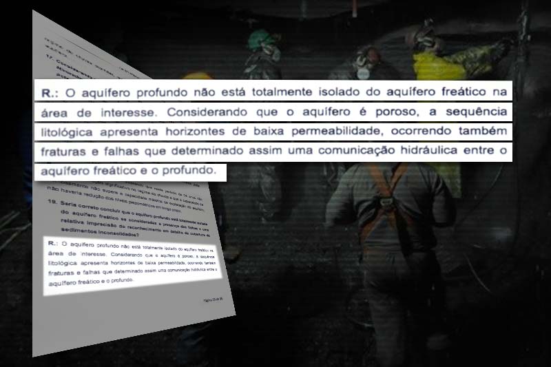 “O aquífero profundo não está totalmente isolado do aquífero freático na área de interesse. Considerando que o aquífero é poroso, a sequência litológica apresenta horizontes de baixa permeabilidade, ocorrendo também fraturas e falhas que determina assim uma comunicação hidráulica entre o aquífero freático e o profundo”, coloca o mais recente relatório. Nele os peritos alertam também que esta interferência pode ocasionar até mesmo a inversão no sentido do fluxo da água.