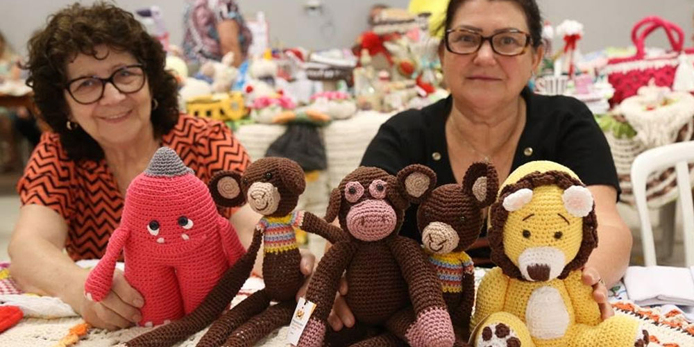 Junto com os clubes de mães da FAI participaram também as integrantes da Associação Amigas do Peito de Içara. “Desenvolvemos as peças durante todo o ano, elas utilizam o espaço para fazer as peças e eu as auxilio”, comenta a voluntária Olga Beatriz Biléssimo. "É uma renda. Gosto de fazer para presentear a família. É uma terapia. Vemos as coisas com amor e carinho", indica uma das participantes, a artesã Janice Raicik Viana.