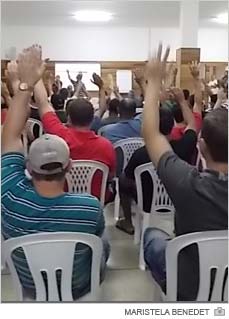 Sem um acordo estabelecido até agora, os trabalhadores metalúrgicos entram em greve por tempo indeterminado a partir de zero hora de segunda-feira, dia 14. A decisão foi tomada na segunda assembleia realizada na noite de quinta-feira, dia 13. Os patrões oferecem até agora 5,56% do INPC. Já a categoria reivindica o INPC mais 7% de aumento real e demais cláusulas sociais. São sete mil trabalhadores distribuídos nas metalúrgicas em 26 municípios do sul do Estado.