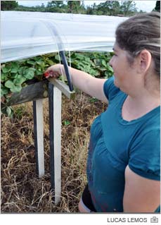 O plantio realizado em tubos ocupa pelo menos metade da propriedade. Na outra parte é mantida então a safra de solo. Conforme Sirlene Borges Budny, o método reduz inclusive a necessidade de agrotóxicos. "Parte dos produtos que utilizamos é o mesmo que se coloca em plantações orgânicas”, compara.