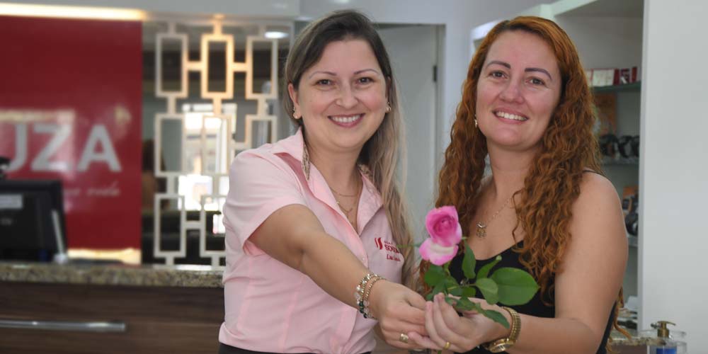 Rita Bertaco dos Santos foi surpreendida pelo comércio da Rua Marcos Rovaris neste sábado, dia 7. Ela foi fazer orçamento de armações infantis e, antes mesmo de fechar qualquer negócio, recebeu de presente uma rosa. “Adorei este símbolo de carinho às mulheres que merecem reconhecimento”, indica. O gesto foi repetido pelo menos 500 vezes nas lojas participantes do Núcleo do Sindilojas voltado para a Rua Marcos Rovaris, conhecida também como o shopping de Içara pela variedade de lojas.