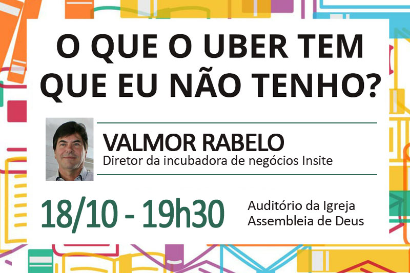 O cotidiano de empresas cada vez mais digitais vai ser apresentado na palestra "O que o Uber tem que eu não Tenho" no dia 18 de outubro. O evento do Núcleo Associativista de Jovens Empreendedores da Associação Empresarial de Içara será com Valmor Rabelo a partir das 19h30 no auditório da Igreja Assembleia de Deus. Os ingressos já podem ser adquiridos por R$ 10 no site www.ajeicara.com.br/eventos.