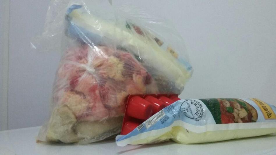 Uma operação conjunta entre a Vigilância Sanitária, Polícia Militar e o Ministério Público apreendeu 2,5kg de carne de frango, 5kg de carne bovina, além de 10 bisnagas de requeijão, cinco bandejas de iogurtes, um balde de emustab e duas latas de pêssego na manhã desta sexta-feira, dia 9. O material estava vencido ou acondicionado inadequadamente em uma distribuidora de frios no bairro Cristo Rei. O estabelecimento já havia sido interditado em setembro por não atender às necessidades da legislação sanitária, mas continuava em atividade.