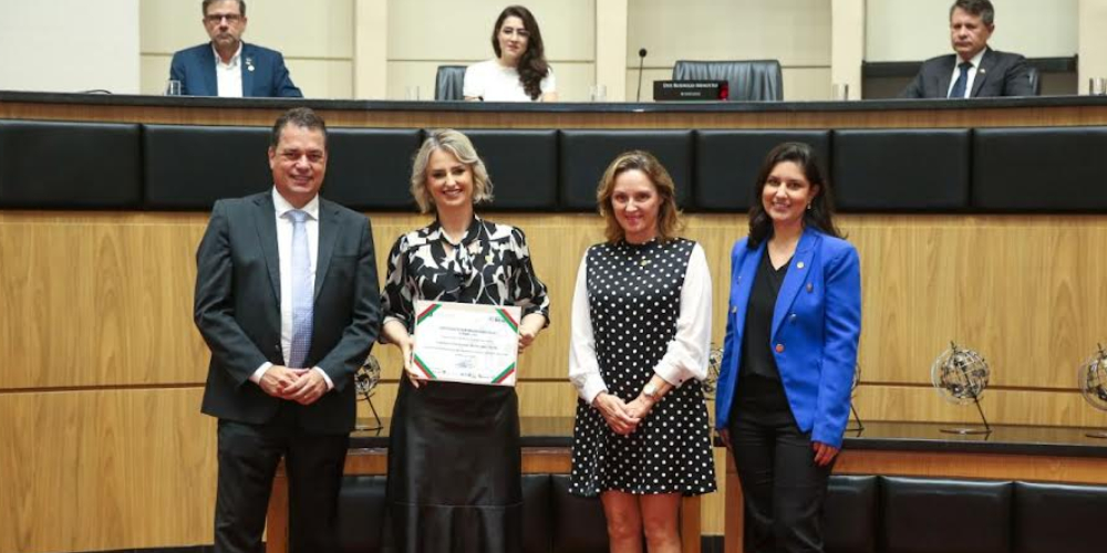A pró-reitora de Pós, Pesquisa, Inovação e Extensão da Unesc, Gisele Coelho Lopes, foi quem recebeu, em nome da Unesc, o troféu no plenário da Alesc. Ela foi também a responsável por falar em nome de todas as instituições certificadas da noite, destacando que cada uma, ao receber o reconhecimento, mostram estar no caminho certo, comprometidas com o bem comum.
