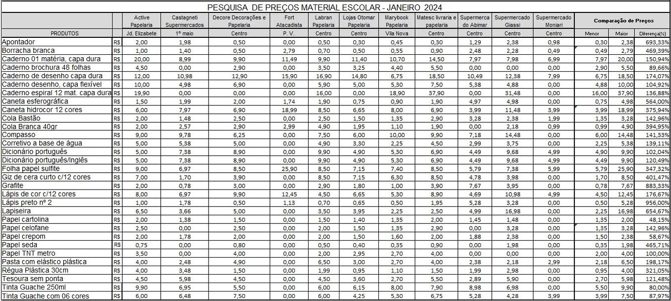 Um levantamento realizado em 11 estabelecimentos, entre papelarias e supermercados, apresentou variação de até 883% nos preços do material escolar em Içara. Ao todo, foram comparados 35 itens indiferentes das marcas com objetivo de permitir que o consumidor possa realizar a sua compra com economia e segurança. Os dados, coletados em janeiro, foram apresentados pelo Programa de Proteção e Defesa do Consumidor (Procon) nesta quarta-feira, dia 7.