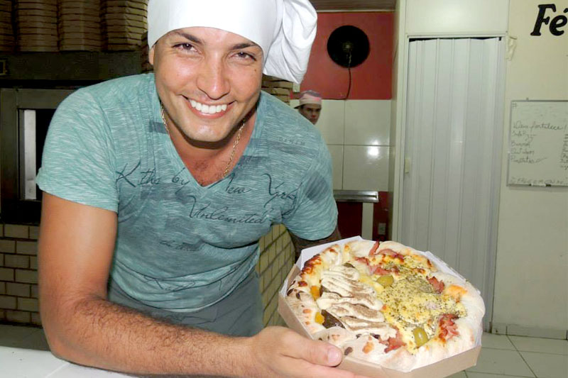 No cardápio da Pizzaria Torenzi, no bairro Liri, há mais de 40 opções. Todas preparadas com uma deliciosa massa fina e crocante. É o que afirma o pizzaiolo, Adilson Pereira da Silveira. Gaúcho de Porto Alegre (RS), está há mais de três anos na profissão e garante um toque especial em cada uma delas. “Na massa em meio aos demais ingredientes eu acrescento gelo. É uma dica imprescindível para dar o ponto”, revela ele. “Preparo as massas, o buffet e já deixo as mais pedidas semi-prontas”, conta.