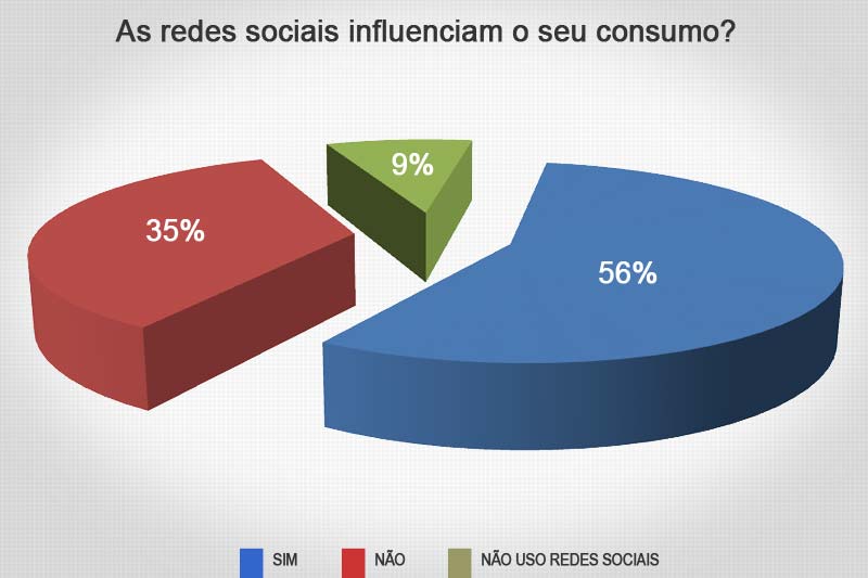 As redes sociais influenciam o seu consumo? O questionamento foi respondido do dia 13 a 20 de outubro por 34 leitores do portal Canal Içara. Dentre eles, 56% consideraram a interferência nos hábitos de consumo. Outros 35% indicaram não serem impactados. Apenas 9% respondeu que não utiliza estes tipos de ferramenta. O resultado é adverso ao apresentado neste ano em pesquisa com americanos. Nos Estados Unidos, 62% indicaram que as plataformas não afetam em nada.