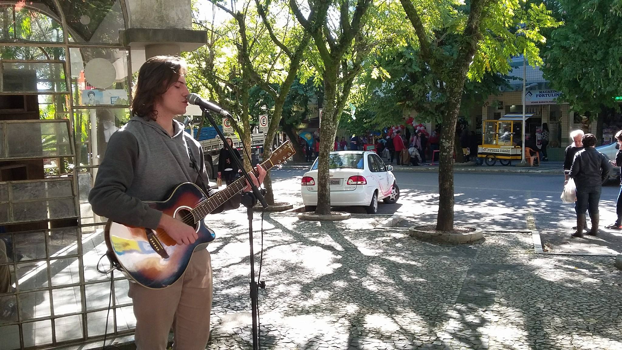 O Sábado Total na véspera do Dia dos Namorados foi embalado pelo rock matinal, desta vez, de Ian Mello, de 17 anos. Uma prévia da musicalidade do jovem içarense acumulada desde os seis anos foi apresentada na Praça da Matriz São Donato com o reforço do pai Harlan na percussão e os acordes do professor da Fundação Municipal de Cultura e Esportes, César Teixeira. “É um importante espaço para divulgarmos os talentos de nossa cidade. Já temos inclusive uma agenda formada para todo ano”, coloca a presidente da FMCE, Maria Tereza Chagas.