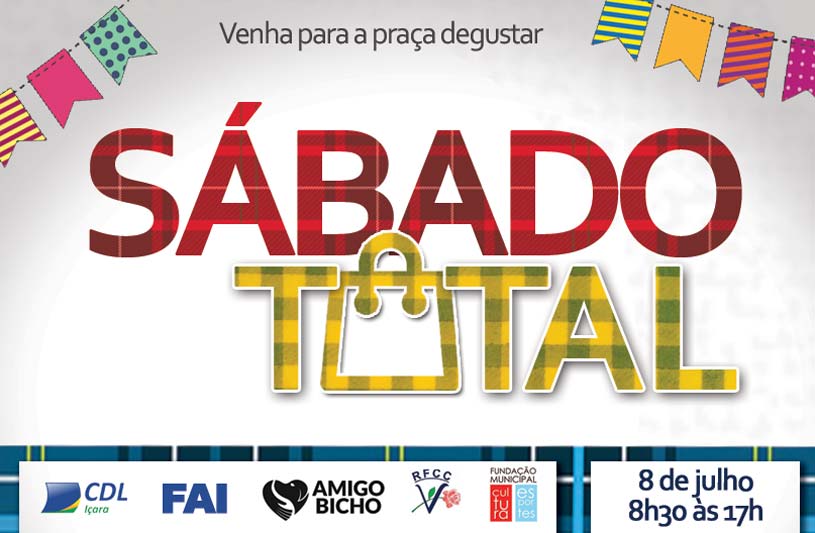 O Sábado Total de julho vai ocorrer embalado por forró neste fim de semana. Além da apresentação da Fundação Municipal de Cultura e Esportes de Içara na Praça da Matriz São Donato, vai ter quitutes na barraca do artesanato produzido pelo setor de Fomento às Atividades Inclusivas, na barraca da Rede Feminina de Combate ao Câncer, a feira de adoções da ONG Amigo Bicho, e, claro, o expediente das lojas estendido até às 17h.