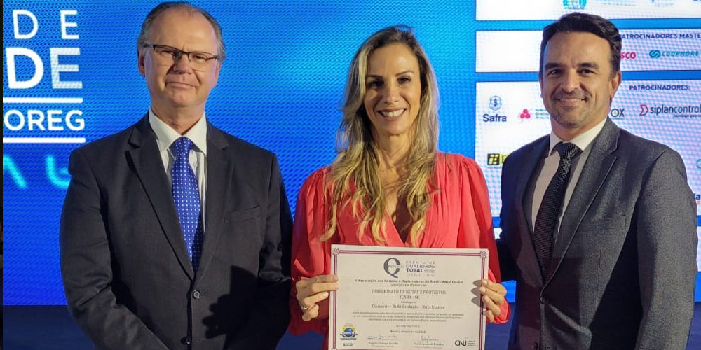 O Tabelionato de Notas e Protestos de Içara conquistou troféus Diamante, Rubi Evolução e Rubi Máster no Prêmio de Qualidade Total na noite desta terça-feira, dia 6. E todos esses destaques apresentados em cerimônia no Distrito Federal garantiram também o primeiro lugar no ranking nacional, da Associação dos Notários e Registradores do Brasil, criado em reconhecimento aos serviços Notariais e de Registro de todo o país que atendam, de forma contínua, os requisitos de excelência e qualidade na gestão organizacional da serventia e na prestação de serviços aos usuários.