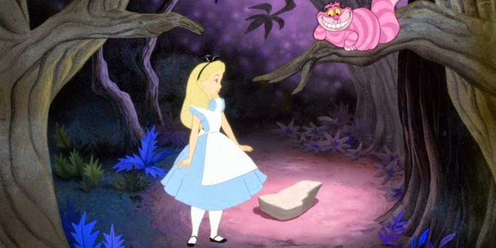 Para quem já leu o livro “Alice no País das Maravilhas”, tem um trecho em que o gato surge em uma arvore por onde a Alice passa e ela súplica ajuda ao gato: