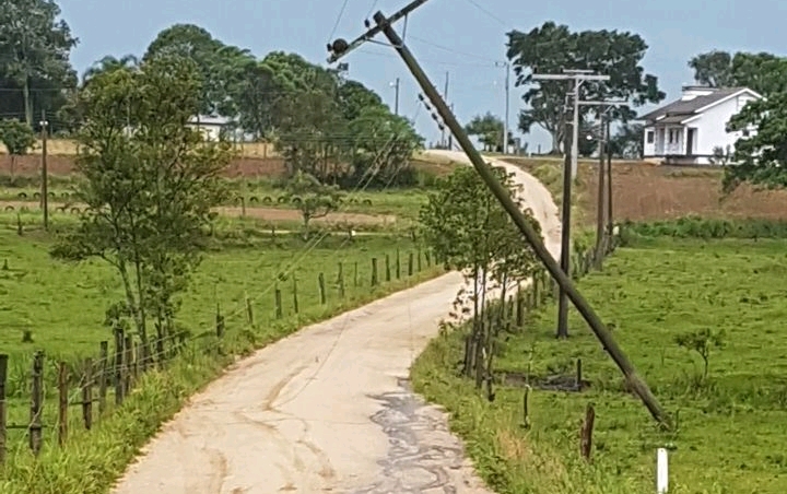 Entre os principais estragos computados pela distribuidora de energia até agora está a queda de postes entre Sanga Funda e Boa Vista, de Coqueiros a Campo Mãe Luzia, além da queima de um transformador em Santa Cruz.
