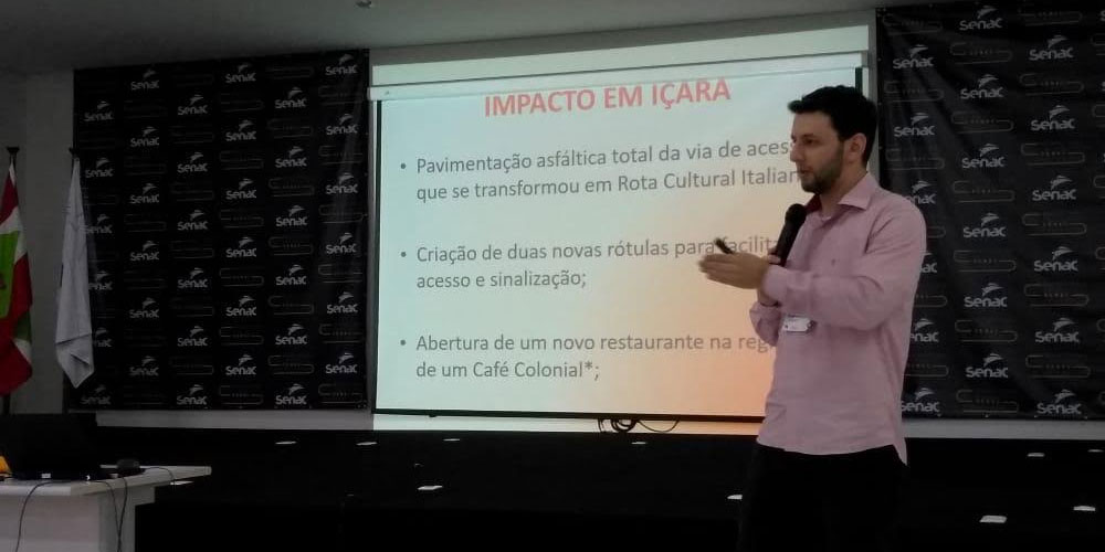 Foram debatidos ainda os impactos econômicos do turismo, como hospedagens e alimentação, entre Paulo Lopes e Içara. “Além de ideias, foi desenvolvido também para melhorar questões de governanças, turismo e novas rotas para a região”, comenta. A apresentação do turismo de Içara foi dividida em quatro polos: rural, negócios, cultural e religioso. “O turismo tem gerado bons frutos e temos potencial de evoluir ainda mais”, pontua.