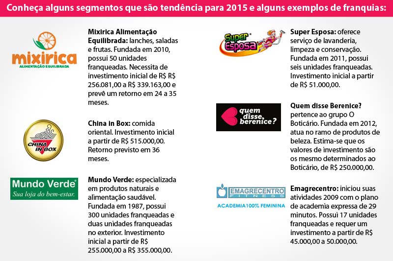 Quem nunca visitou O Boticário, Cacau Show e o mundialmente famoso MC Donald’s? As franquias estão em ascensão no país. Somente em 2014 tiveram um crescimento de 7,7% e faturamento de R$ 127 bilhões conforme a Associação Brasileira de Franchising.