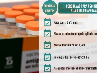 Estado aguarda definição do Ministério da Saúde para uso da Coronavac em crianças