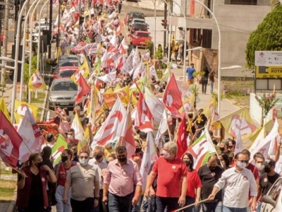 Alex Michels e Bia realizam caminhada com apoiadores no Centro de Içara
