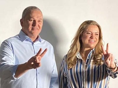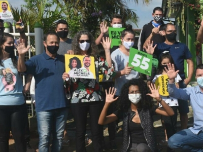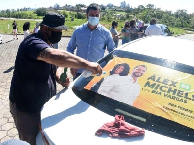 Alex Michels e Bia Vargas fazem adesivaço e carreata