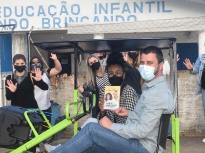 Alex e Bia levam propostas aos moradores do Planalto com triciclo