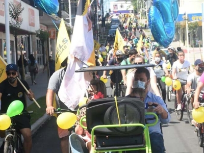 Alex Michels e Bia Vargas realizam passeio ciclístico