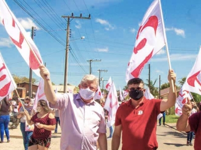 Arnaldo e Da Rolt fazem caminhada com bandeiraço em Vila Nova
