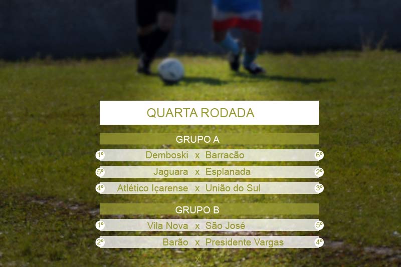 Os aspirantes ainda não estão no mata-mata. Mas a quarta rodada repetirá coincidentemente a fórmula utilizada na composição de fases eliminatórias do Campeonato Içarense. Os jogos programados para domingo poderão definir também os times que ficarão de fora da segunda fase. Por ora, apenas o São José já perdeu todas as chances de obter o carimbo no passaporte. Já o Atlético Içarense, Jaguara e Barracão brigam para ficar de fora desta lista.