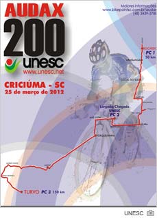 O desafio Audax 200 vai percorrer a região no próximo domingo, dia 25. A largada do evento será às 5h na Universidade do Extremo Sul de Santa Catarina. O caminho seguirá por Içara, Cocal do Sul, Urussanga. Na sequência, retornará até Forquilhinha, Meleiro e Turvo. E nos quilômetros finais voltará ainda até a Unesc. A estimativa é que 100 atletas busquem a superação no desafio.