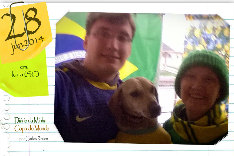 O Hulk é o Bruno Lopes. Sempre com muita vontade, está sempre lá atrás, marcando lateral. E quando tem a chance de finalizar... acaba errando. Mas acho que muito disso está pela função tática. Como você vai marcar e ainda ter gás para fazer o gol? Hoje também vale uma menção nada honrosa para o árbitro Howard Web, que fez uma partida digna de Célio Amorim. Quando o Chile perdeu o último pênalti! Que alívio!!! E não só eu, da sacada de casa ouvia gritos, buzinas, apitos, foguetes pelo centro todo. Esse é o clima de Copa! VAI BRASIL!