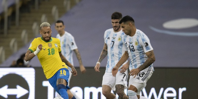 O Brasil enfrentou dura marcação dos argentinos, que protagonizaram diversos lances ríspidos no primeiro tempo. E acabou sendo o rival quem pulou na frente no Maracanã. Aos 21 minutos, Di María foi lançado, saiu cara a cara com Ederson e tocou por cima para abrir o placar. Todavia, a Seleção Canarinho finalizou cinco vezes à meta de Emiliano Martínez, mas sem conseguir converter em gols na etapa inicial.